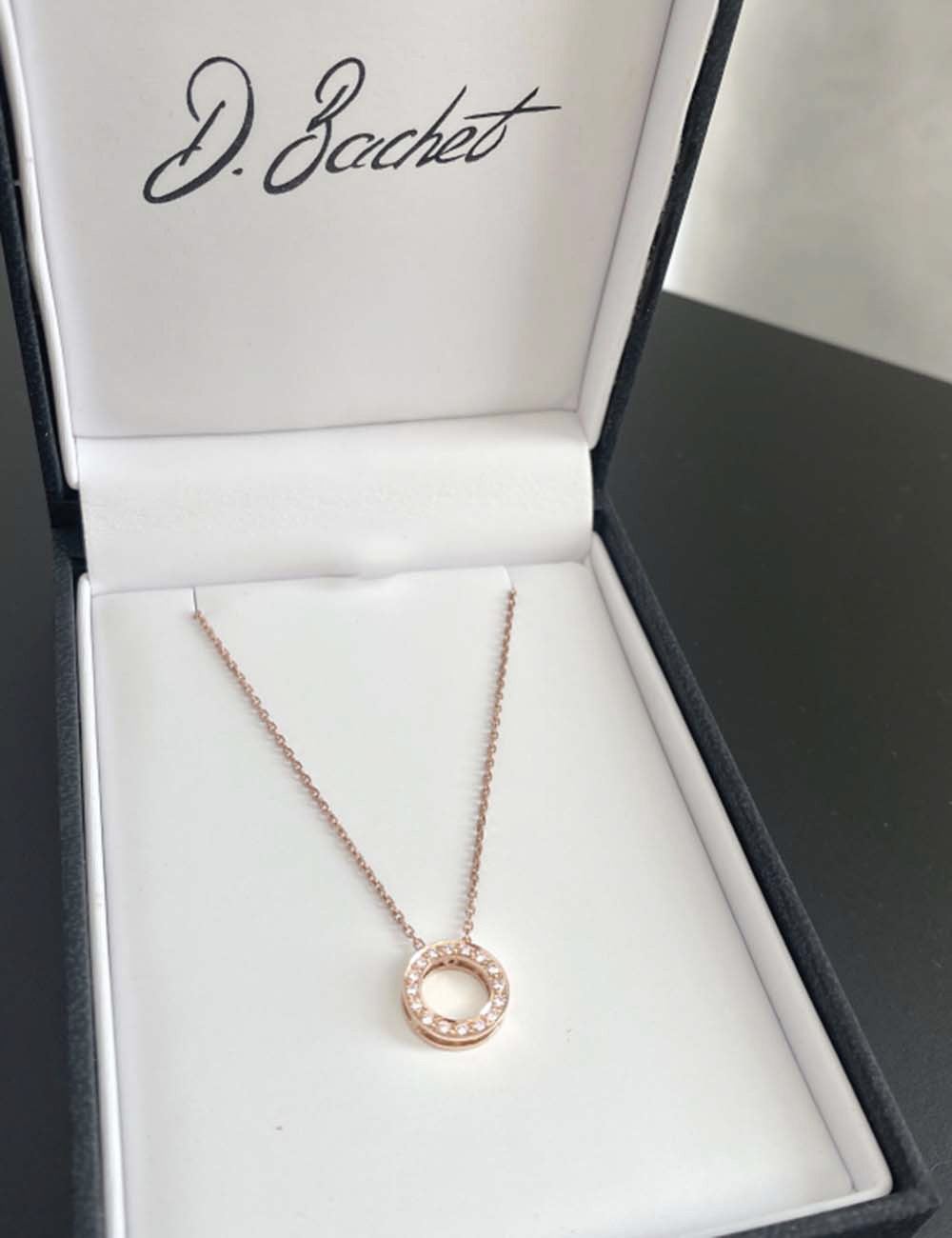 Discover the DayLight Cercle women's pendant by Maison D.Bachet, an elegant and timeless luxury jewel adorned with sparkling white diamonds. In white gold, yellow gold or rose gold, this refined necklace will sublimate your neckline and add a touch of sophistication to your style. A women's pendant that is the perfect gift to mark a special event or simply to express your love to your special someone. Its modern design and pure lines make it a statement jewelry piece that will stand the test of time with grace and elegance. This pendant is also handmade set with black diamonds.