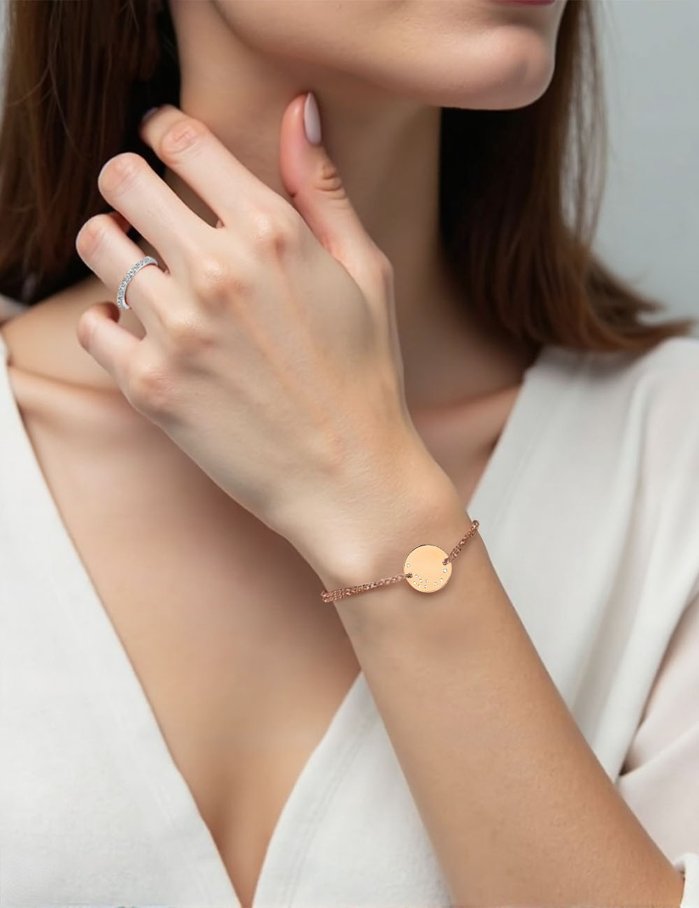 Le bracelet Médaillon Cascade s’impose comme une création où le détail devient langage. Conçu en or 18 carats, décliné en or jaune, or rose ou or blanc, il se distingue par une médaille de 14 mm délicatement sertie de dix diamants blancs en cascade. La disposition des pierres n’est pas seulement esthétique : elle traduit l’unicité et la fluidité, à l’image de l’eau qui s’écoule, évoquant la beauté et la grâce de la nature. Chaque éclat accompagne le mouvement, révélant un jeu subtil entre lumière et matière. Plus qu’un bijou, ce bracelet femme en or et diamants exprime une élégance naturelle et une profondeur symbolique. Une pièce façonnée dans notre atelier, qui s’inscrit dans l’univers de la collection Cascade et dans la vision joaillière singulière de D.Bachet.