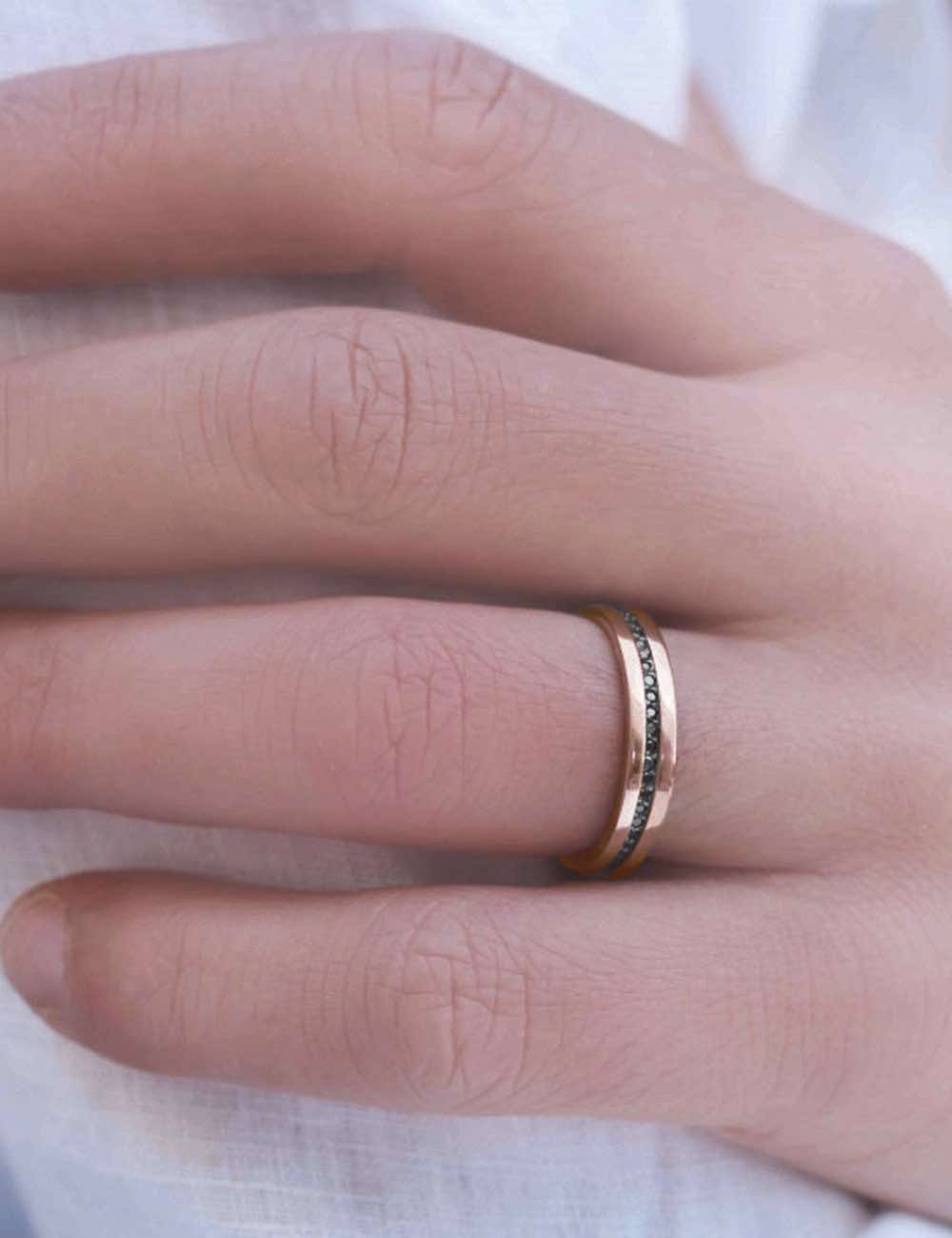La Sense of Light est une alliance homme au design moderne et épuré. Dans sa version 4,5 mm, les diamants noirs sont sertis en tour complet sur un niveau inférieur de l’anneau, créant volume et contraste avec le platine, l’or jaune ou l’or rose. Réalisée sur-mesure dans notre atelier en France, cette bague de mariage reflète le savoir-faire joaillier de D.Bachet. La Sense of Light existe aussi avec des diamants blancs, offrant la possibilité d’un jeu d’alliances complémentaires.